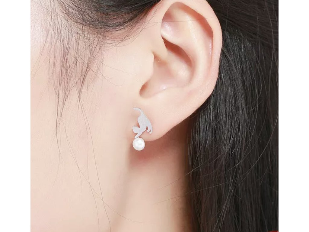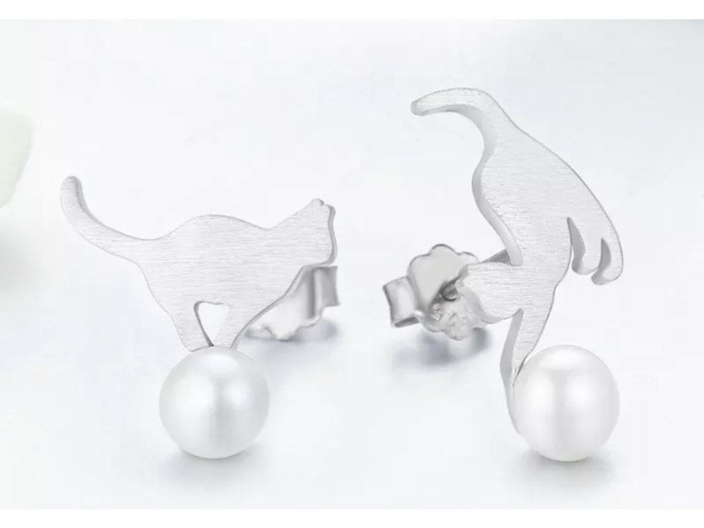 Stříbrné puzetkové náušnice s umělou perlou.