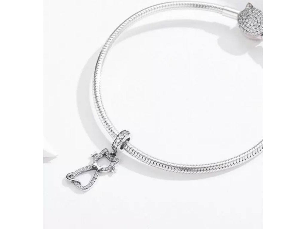Přívěšek kočičky osazený zirkony, vhodný na řetízek i náramek.