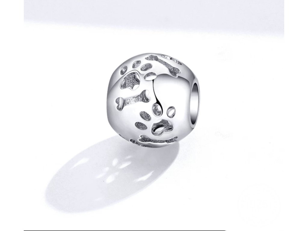 Přívěšek s motivy kostiček a tlapek, nejvhodnější na náramek, lze ale i na řetízek.