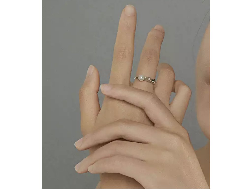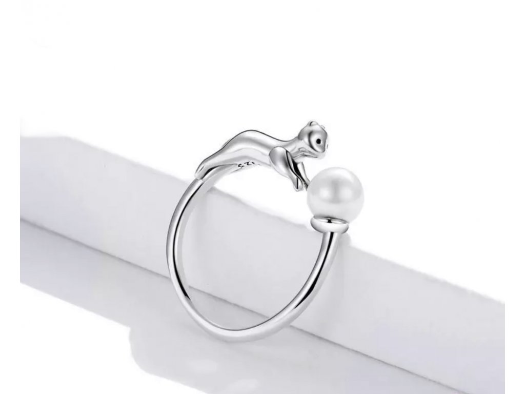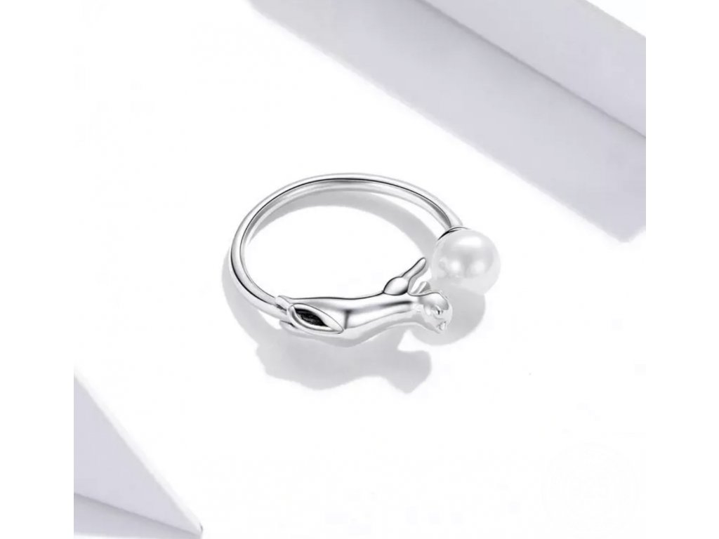 Přizpůsobivý prstýnek (+/- jedna velikost), osazený perlou.