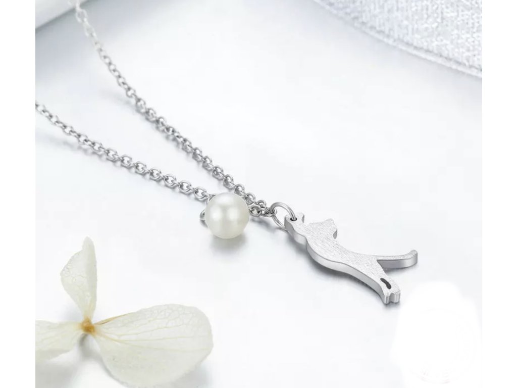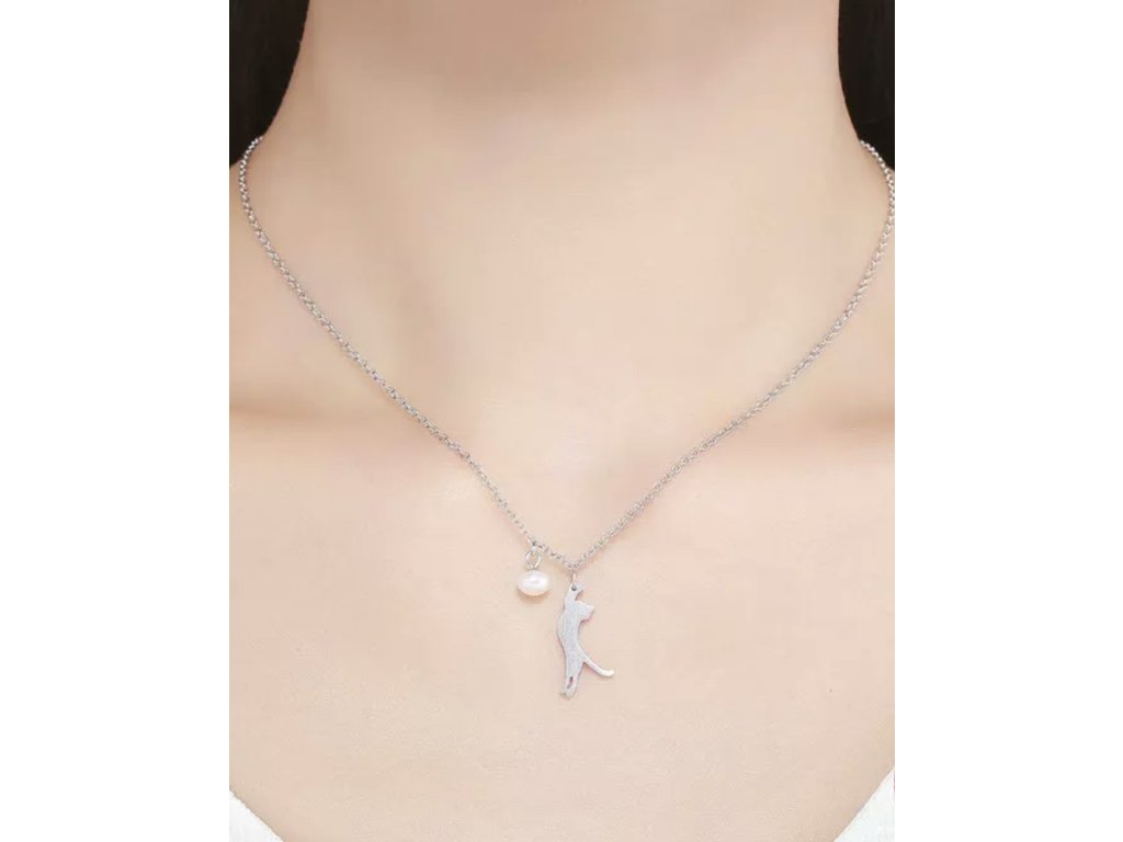 Stříbrný řetízek s kočkou a přírodní perlou.